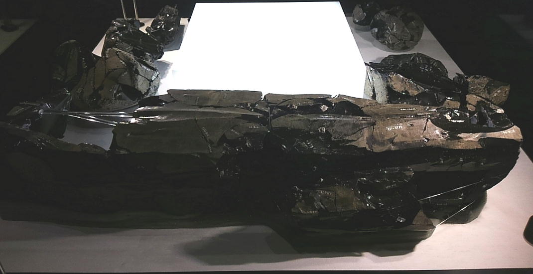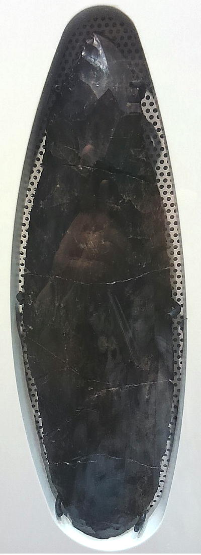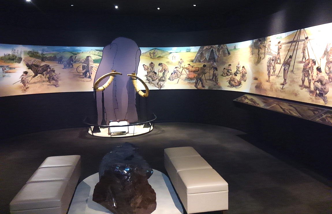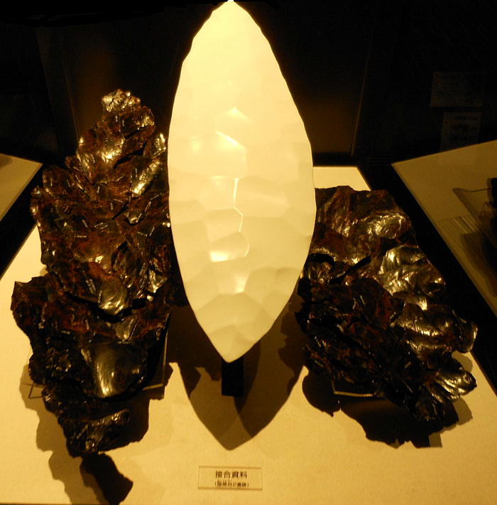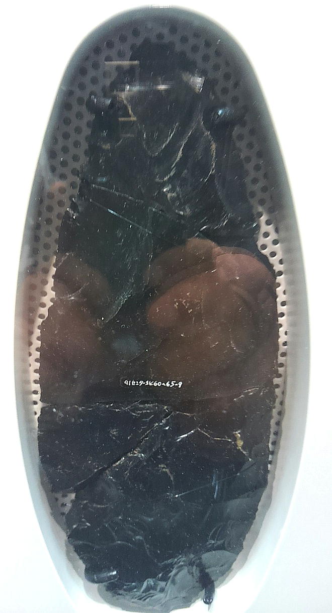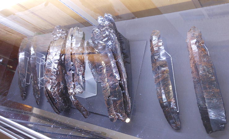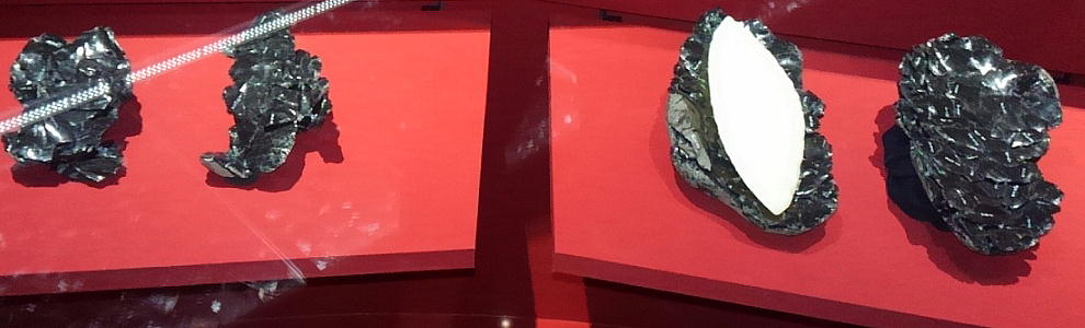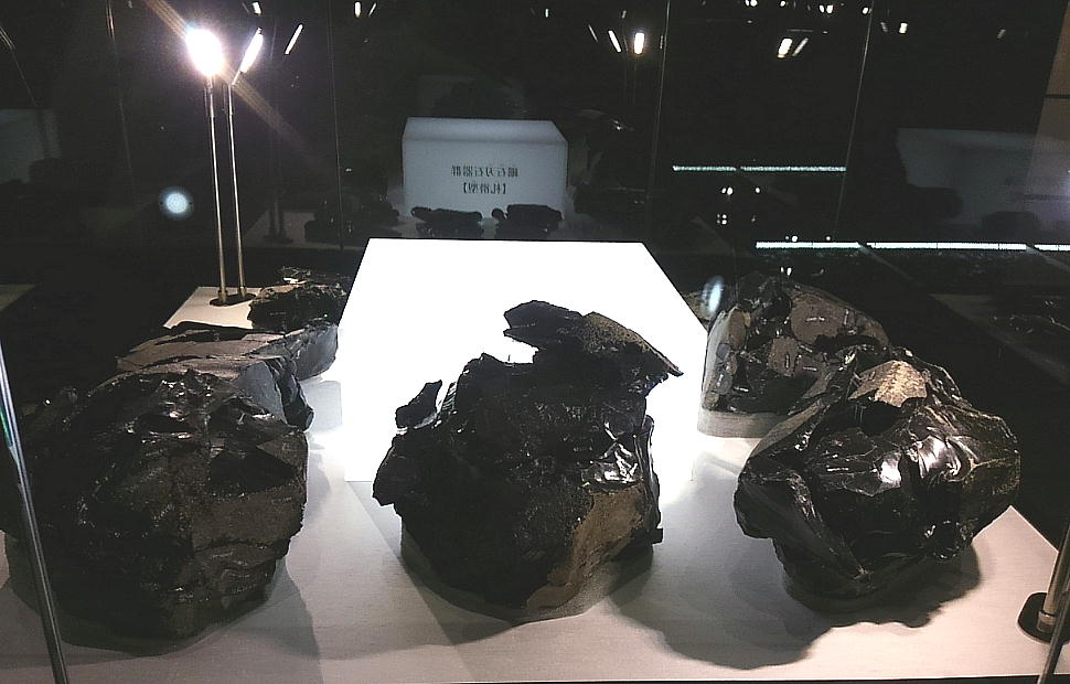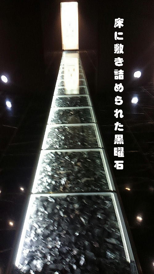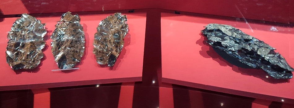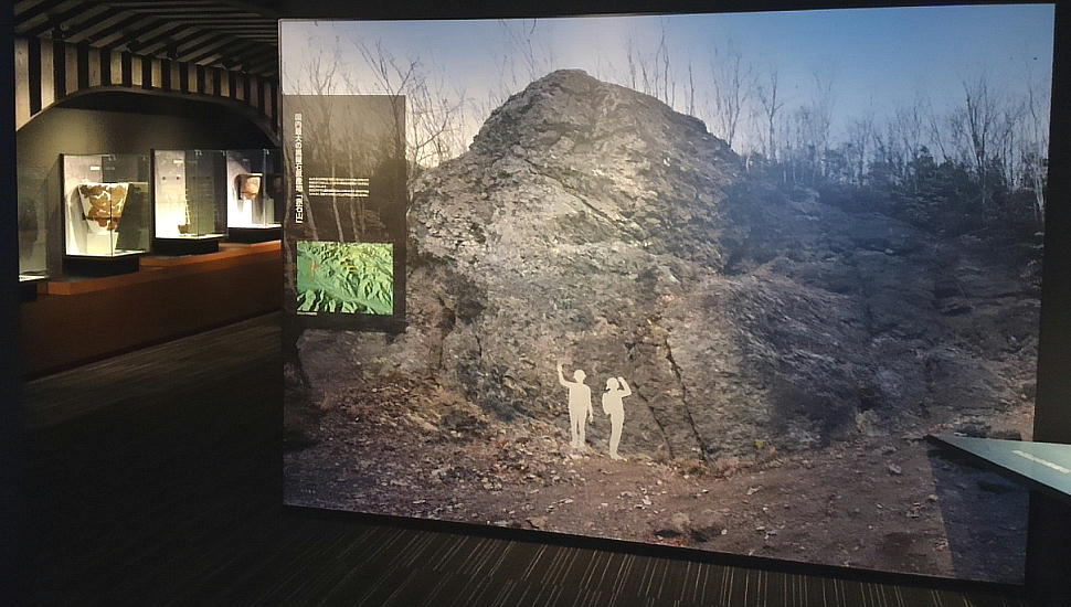 埋文センターへ入ると、正面にデッカイ黒曜石の石器が飾ってある。