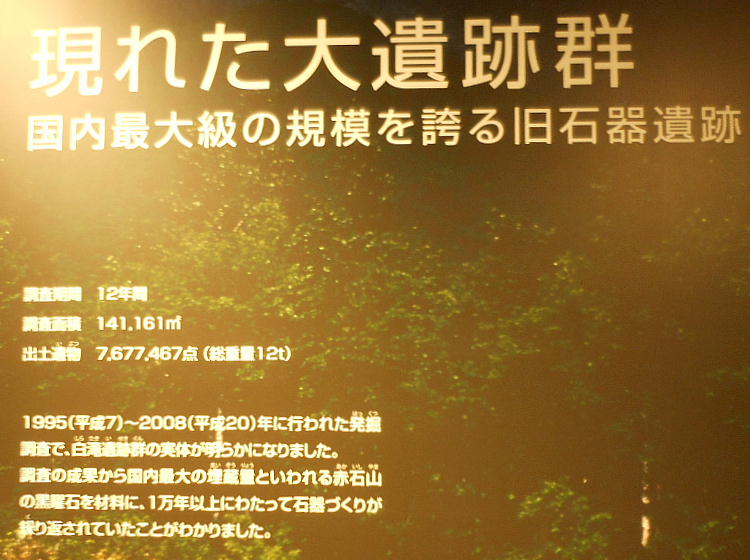 における後期旧石器時代遺跡の中でも群を抜く多さを誇る。我が国で最大の規模・質量を誇る後期旧石器