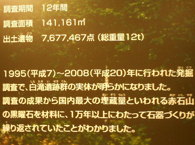 んでいる。ここで取れた石器は、縄文時代に遠く関東にまで運ばれている。クレイパーや掻器などあらゆる