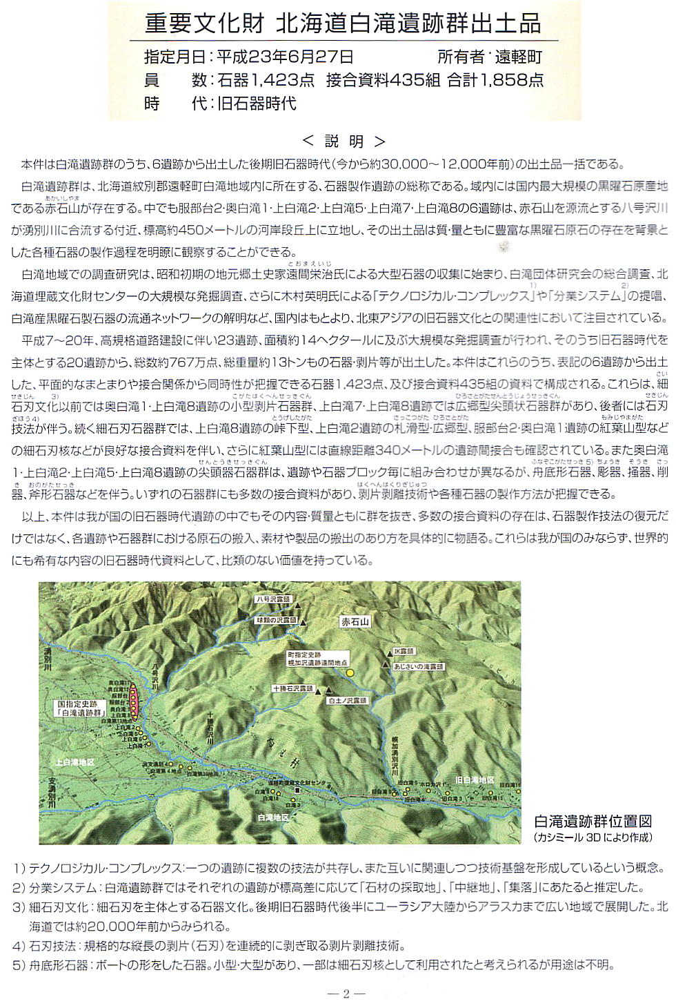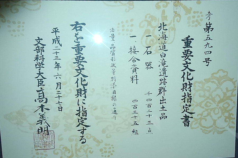 このたび、遠軽町埋蔵文化財センター所蔵資料の一部が『白滝遺跡群出土品』として国の重要文化財に