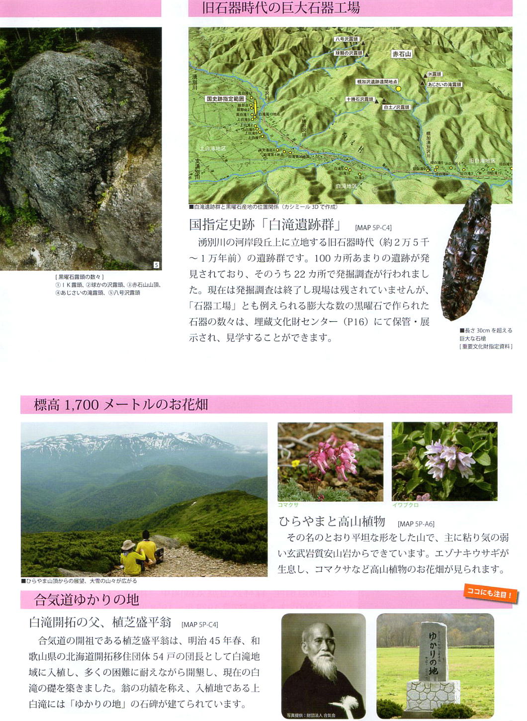 内有数の黒曜石およびそれを原材料にした石器の産地であり(白滝ジオパーク)、大正時代には合気道創