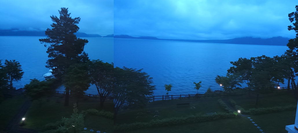 食事が終わり、風呂にも入って部屋に戻ると、支笏湖はすっかり夜の帳に覆われている。北海道最終夜である。