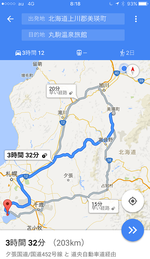 動物園を出て、大雪山系の山並みを眺めながら,富良野に寄り、札幌で給油して、一路支笏湖を目指す。