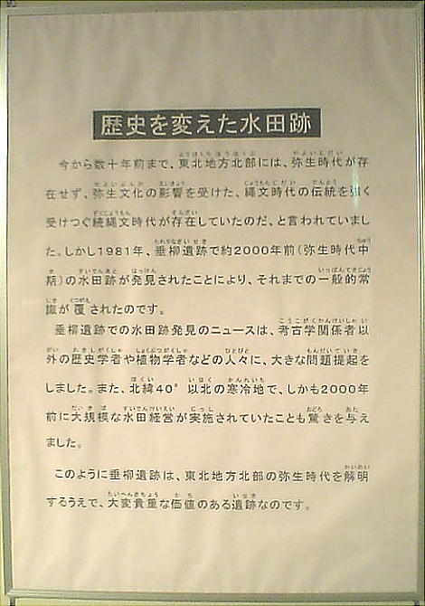 にある。というよりも、埋蔵文化財センターには垂柳遺跡からの出土物しかない、と言ってよい。つまり「垂柳遺跡資料館」なの