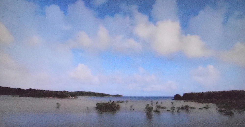 仲間川の河口は広い。引き潮と満ち潮ではまるで違う景観になるが、満ち潮の時の河口は海のようである。我々のカヌー