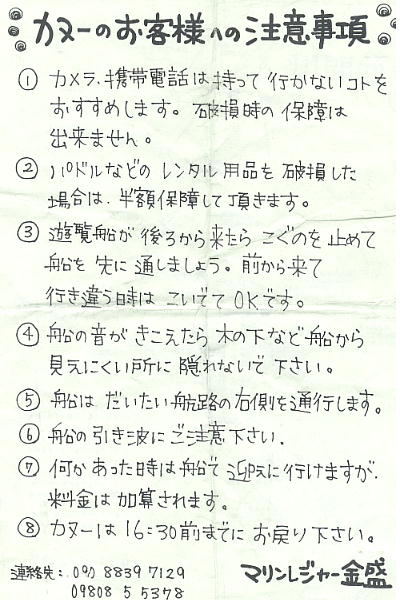 体験は、河口の東側、「マリンレジャー金盛」(沖縄県八重山郡竹富町南風見仲29-28 TEL 09808-5-5378)という所で