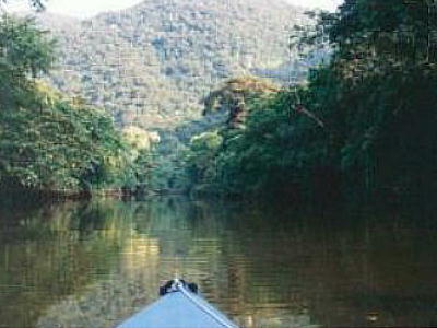 濁っていた川が次第に澄み切ってくる。真水の領域に入ったのだ。カヌーの終点まで行けば水が飲めますよ、とお姉ちゃ