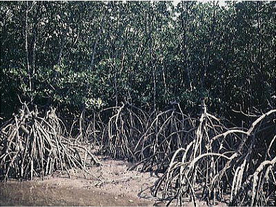 マングローブとは、熱帯、亜熱帯地方の海岸、入江、河口泥湿地で、満潮時に海水に浸る場所に生育しているヒルギ類の総