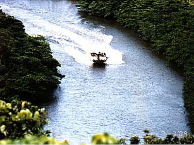 場所は、河口から約6Km程上流である。観光船は潮の干満により不定期の運用だそうだが、ここから先へは行かない。