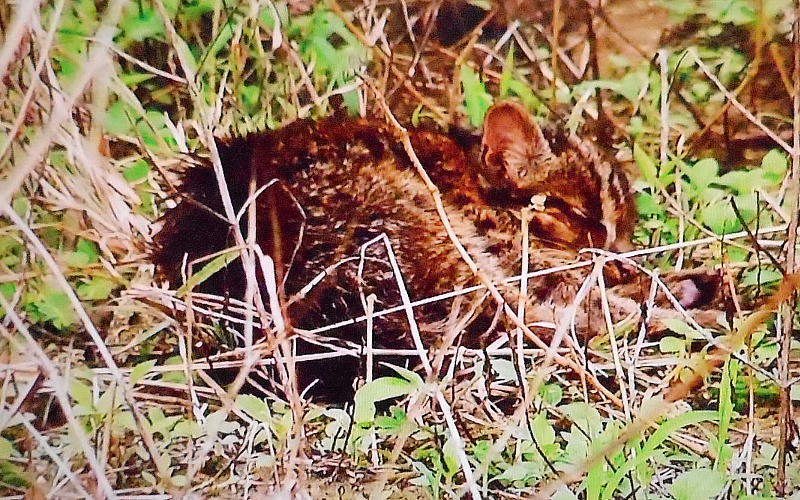 これはイリオモテヤマネコの子供である。子供はあまり人を恐れず、カメラを向けても逃げない(そうだ)。