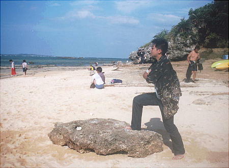 論植物もなにもない無人島である。遠浅で入門編の講習には最適の場所のようで、シュノーケリ
