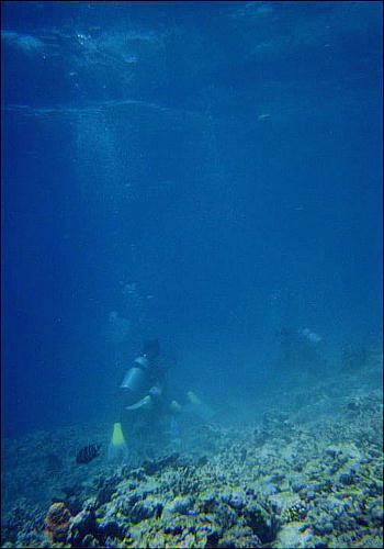 午後からは沖合へ出て、珊瑚礁の上に錨を降ろして船から海中へ。すごい広さの珊瑚礁で、竜宮