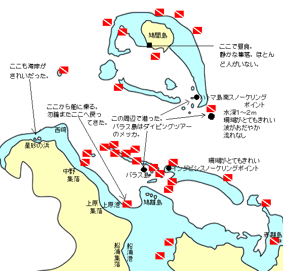 ングとスキューバダイビングのスクールがいくつも開かれている。船で渡してもらわなければ行