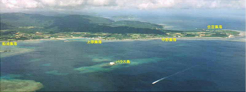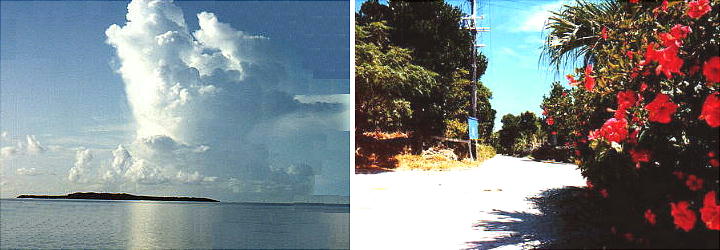 鳩間島遠景と島内の風景。