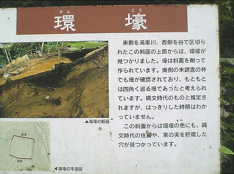 環濠も石組も台地の上へ登っていく途中にある。斜面に住居を造り環濠を掘っているのだ。ここを聖なる場として、それを護