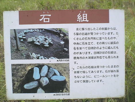ている。組石の石材は7kmほど離れた米代川下流より運び込まれたと見られている。又石の環の下からは多くの土壙墓が見