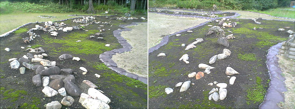 4箇所の環状列石(ストーンサークル)は、一番大きいものは、直径50mほどの、三重になる石の輪であった。石を組んだ