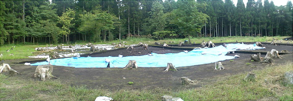 最後に見つかった環状列石Dは、直径36mの二重の環状列石だ。付近は草茫々、木の切り株だらけで、これは場所がどこだ