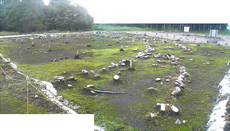 からストーンサークルAを見ると、夏至の日に太陽が沈む位置とだいたい一致する。ストーンサークルAは直径が約32mで上空か