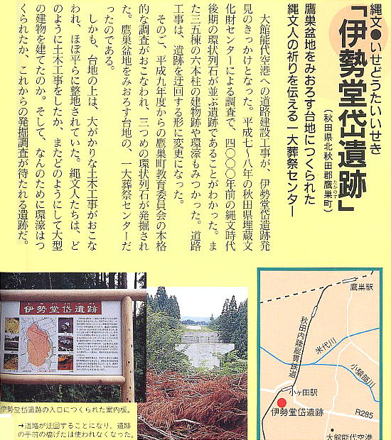 され、アクセスルートの変更と遺跡の現地保存が決定された。平成13年、伊勢堂岱遺跡は国の史跡に指定された。当初は住