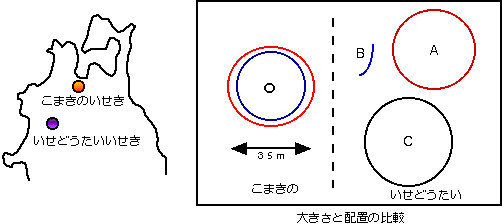 かとの指摘もある。 ストーンサークルBは円ではなく欠けた弧状をしており、これは国鉄阿仁合線(現在の秋田内陸縦貫鉄道)