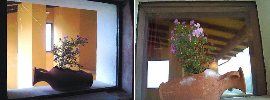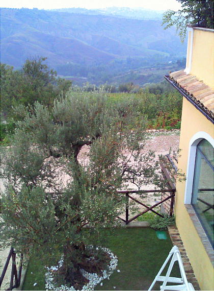 開いている窓は、我々の泊まった部屋の浴室。その向こうが母屋である。ベランダから写す。