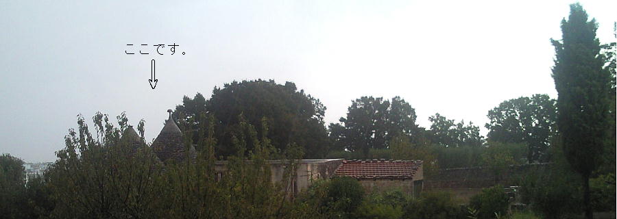 ダの下を通り抜けた所で車を止め、上にいる私に向かって話しかけてきた。「ボンジョールノ、私のワイフが母屋の二階にいるから、
