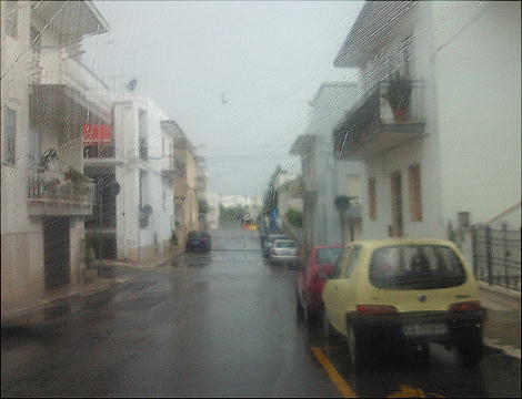 まるで我々が来るのを待ち構えていたかのように豪雨となった。道路を川の様に水が流れだし、こりゃとても写真なんか撮ってる場合