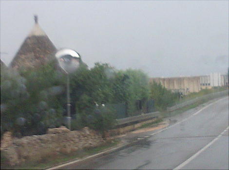 宿を後にして、世界遺産に登録されている「アルベロベッロ」の町を目指す。雨は激しく降ってくる。こりゃ今日は1日雨かもしれな
