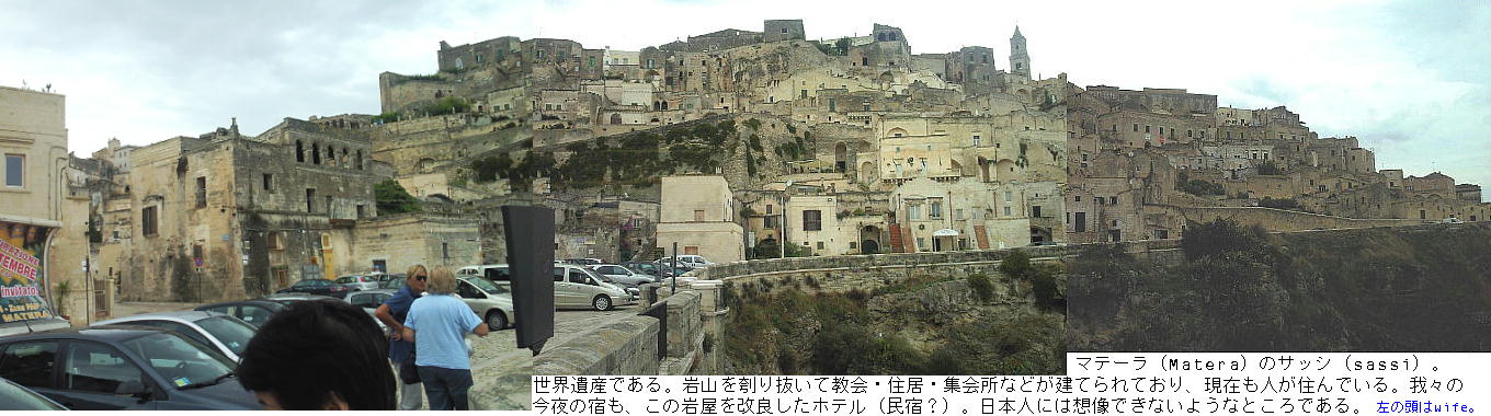 だ。今日はアルベロベッロを諦めたので四時半頃マテーラに着いたが、サッシへ入ってくるには、恐ろしいほどの道を通り抜けてこな