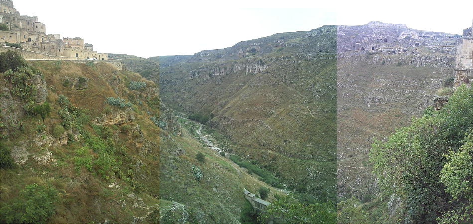 くれる。岩窟住宅で埋め尽くされた町並みが、南イタリアの強い日差しを受けることによって作り出す光と影の明確なコントラストは、
