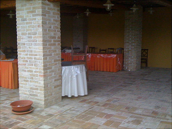 ここが、昨夜の結婚式(披露宴)会場。開けっ放しのパ−ティ会場である。全然散らかった跡が無いのは、昨夜の内に片づけたのだろうか。