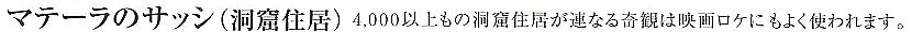 後で聞いたが、これらの洞窟は石器人達の住居跡だった。「あーっ、これがサッシかぁ」