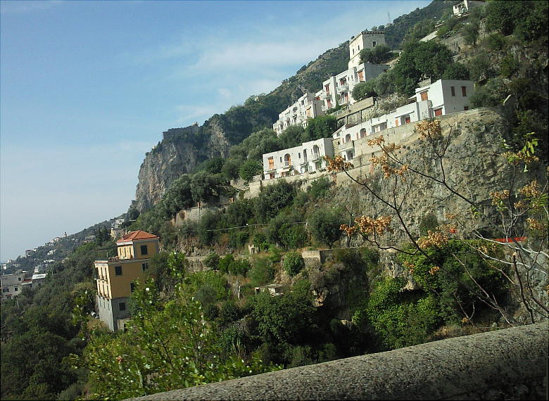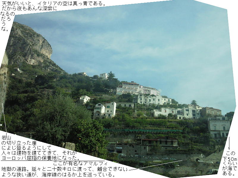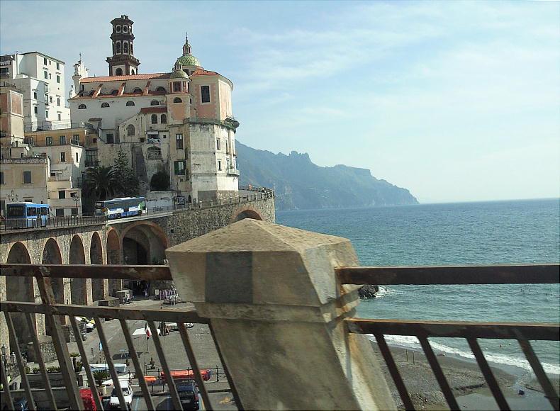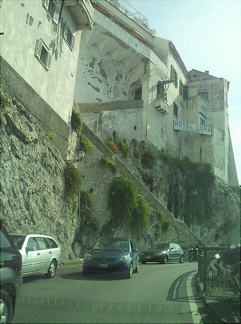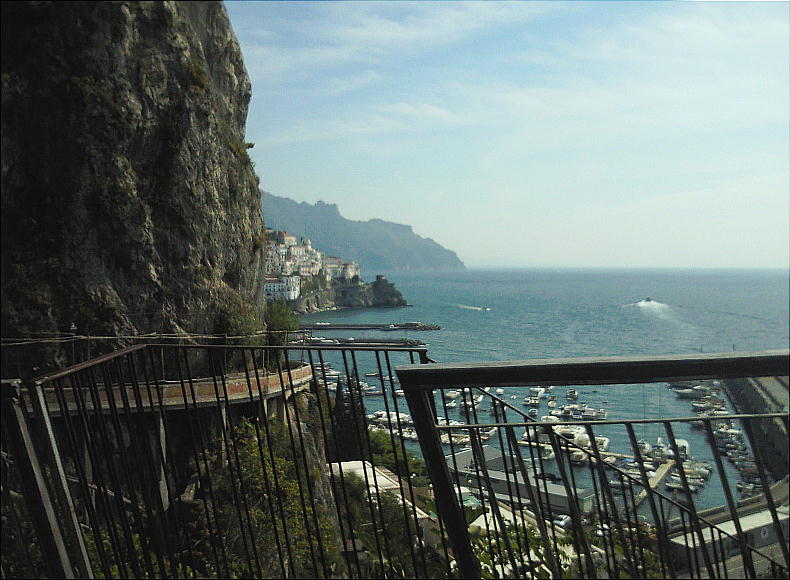 崖にへばりついたような町である。道路は狭く離合するのも大変な道路で、嫁半はよく運転してるなと感心する。アマルフィー海岸は、