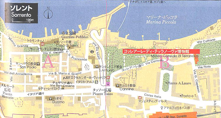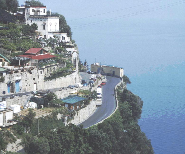 上の写真の道路を真っ直ぐ(上方へ)行けば、ソレントからアマルフィ海岸方面へ。