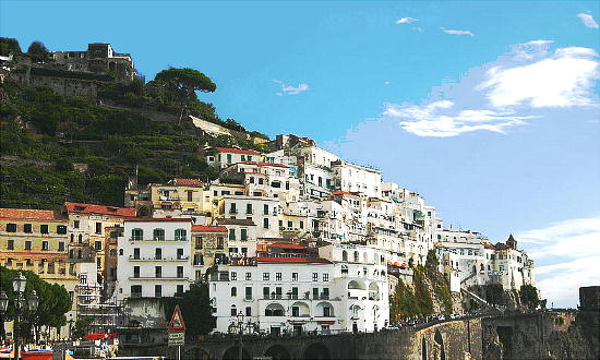 られた港から、断崖上に向かって形成されている街である。アマルフィ海岸は、ユネスコの世界遺産(文化遺産)に登録されている。