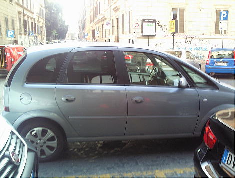 TAXIの列があったので、てっきり普通のTAXIだと思って乗ったのだが、実はこれが有名な「ローマの白タク」だった。車装は普通