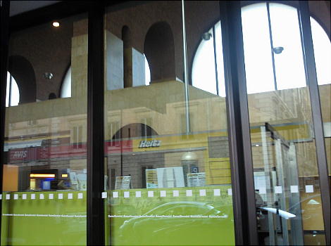 私が駅の構内へ入ってみた。「 Her・・」という看板がチラッと見えたので行ってみると、まさしくそこがレンタカー会社のカウ