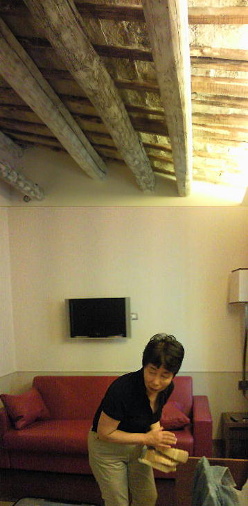 さぁいよいよローマの、イタリア最後の宿だ。今日明日と2泊する部屋は、寝室と浴室の2つだが、勿論それぞれの部屋は広い。
