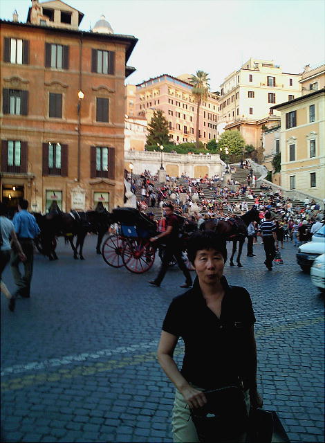 スペイン広場へ行く。馬車が居るので臭い。人々が石の階段に座り込んでいる。何をしているのか。おそらく何もしていないんだろうな。