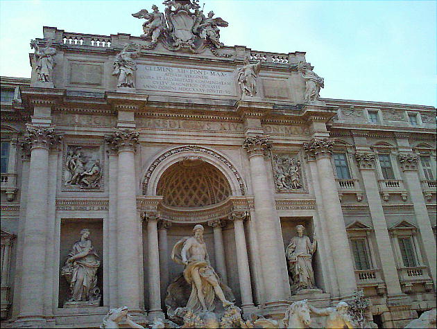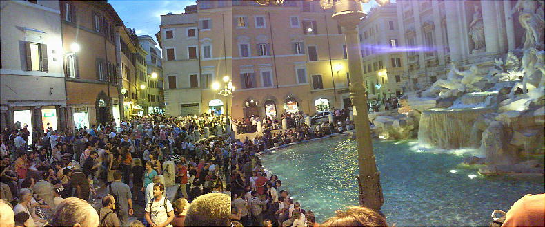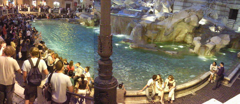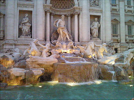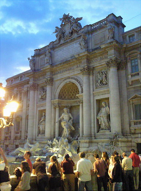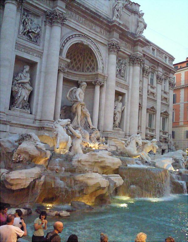 有数の観光名所として賑わっている。「トレビの泉」とも。