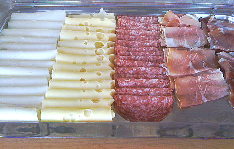 好きなだけハムやチーズ、ソーセージなどが食べられる。