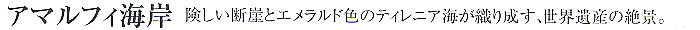 に面する。ヴィエトリ・スル・マーレからアマルフィを抜け、ポジターノへ到るまでの一帯を言う。世界一美しい海岸と言われ、1997
