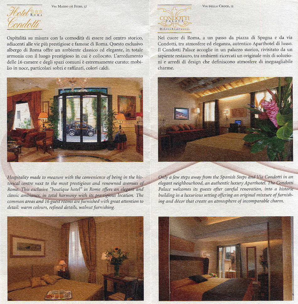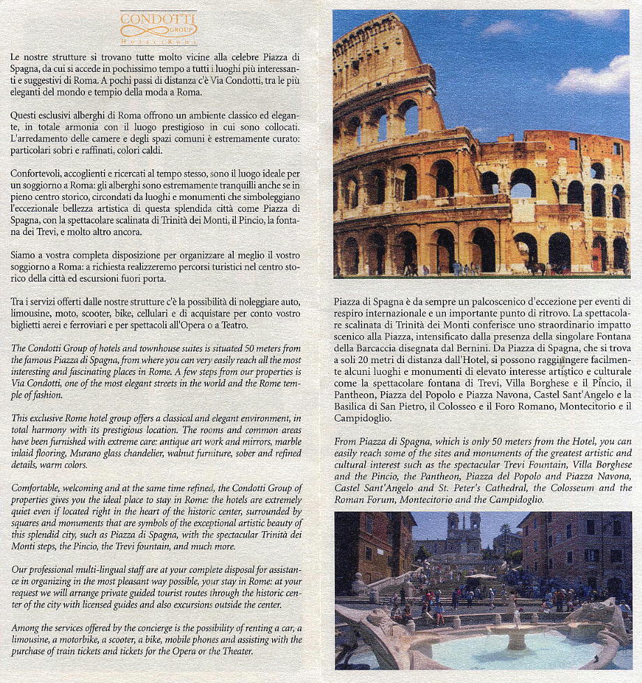 今日と明日の宿は、このスペイン広場の側にあるのだ。ホテル・コンドッテイ。高級ブランド街のど真ん中にあり、「spagnia」