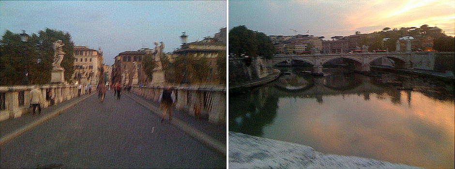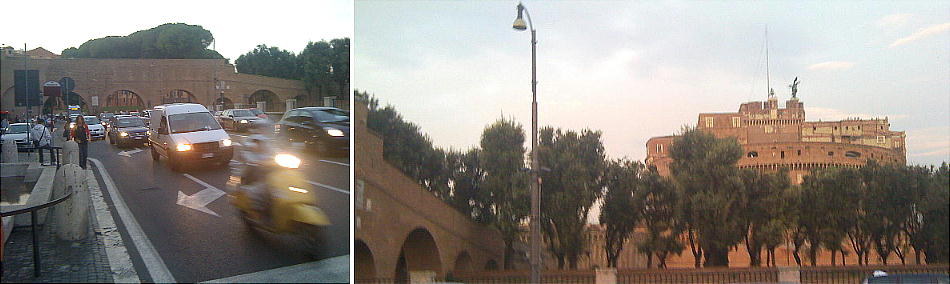 サンピエトロ大聖堂の夕陽(上)と、サンタンジェロ城(下)
