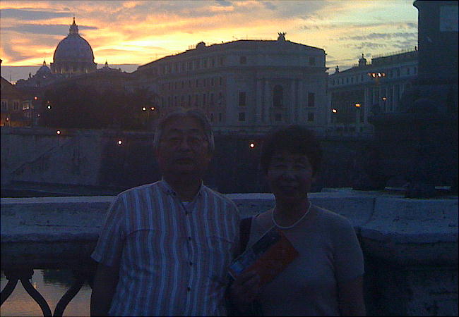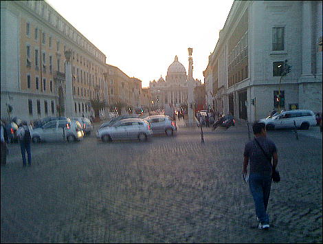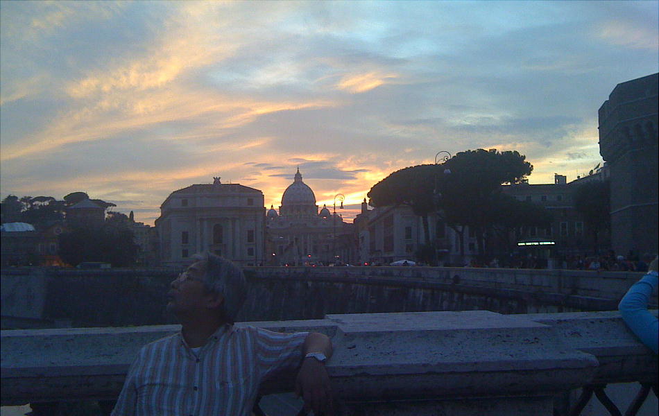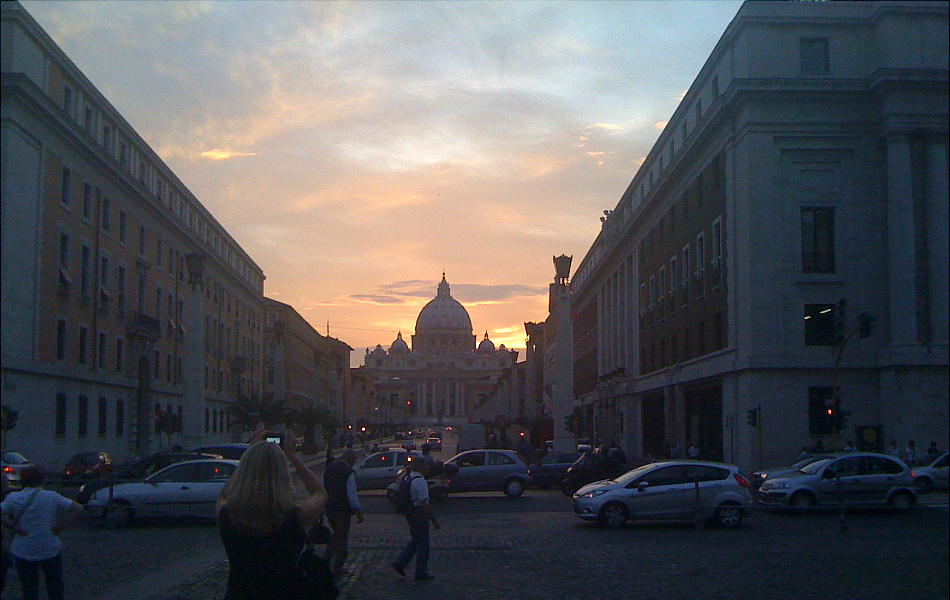 夕日を浴びて、バチカンのサンピエトロ大聖堂が美しい。しばしその美しさに見とれる。