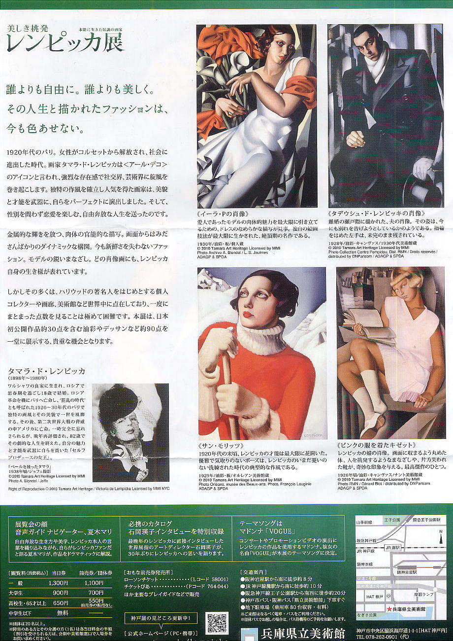 2010年5月から兵庫県立美術館で「タマラ・レンピッカ展」が開催されていた。日曜日早速wifeと見学に行った。