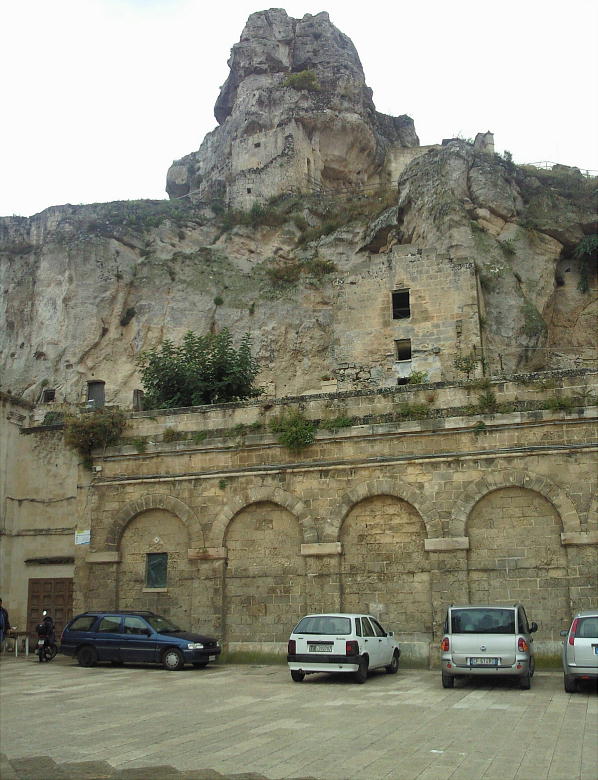 るために、見上げるような形で街の全体図を眺めることが出来る。さらには、グラヴィーナ渓谷や対岸にある天然の洞窟を利用した岩