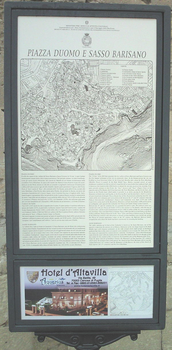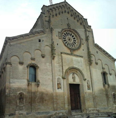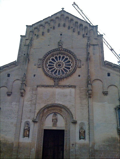 サッシ地区を見渡す高台にあるドゥオモは、1268年から1270年ににかけて建設された、プーリア=ロマネスク様式の教会である。基本