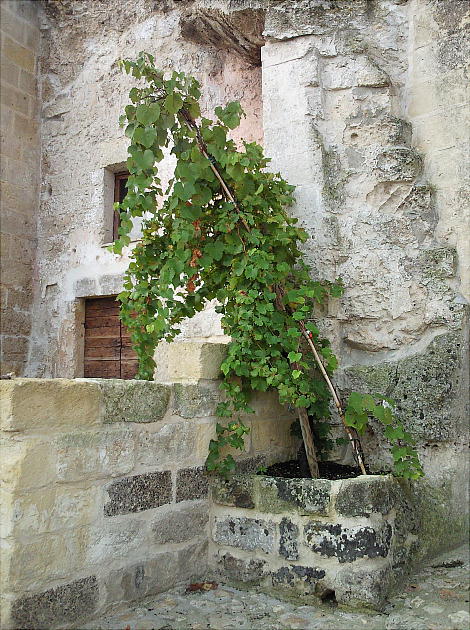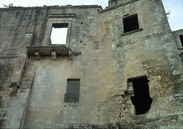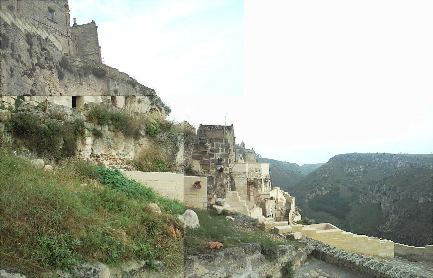 グラヴィーナ渓谷の崖縁に建てられた教会の姿は、マテーラの土地に生きるきびしさを象徴しているような印象を受ける。